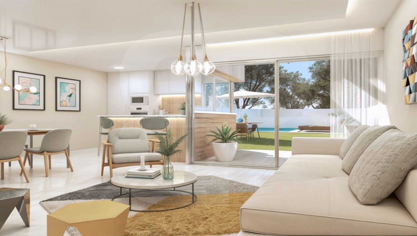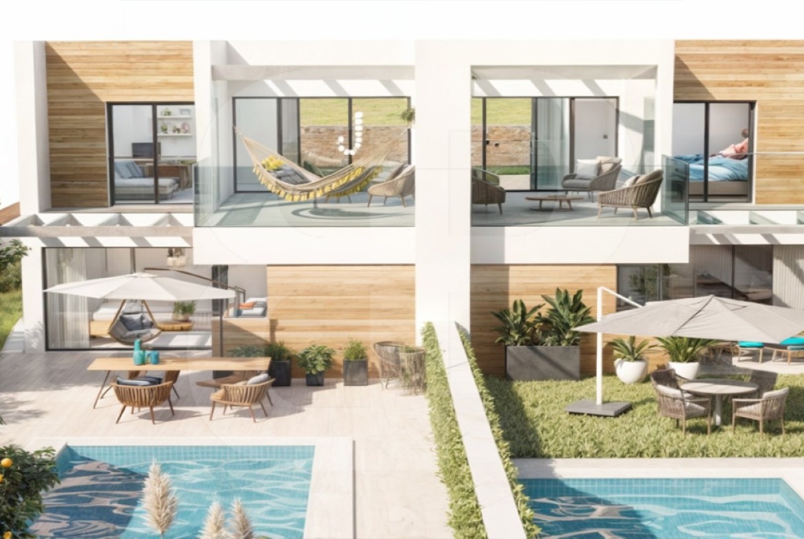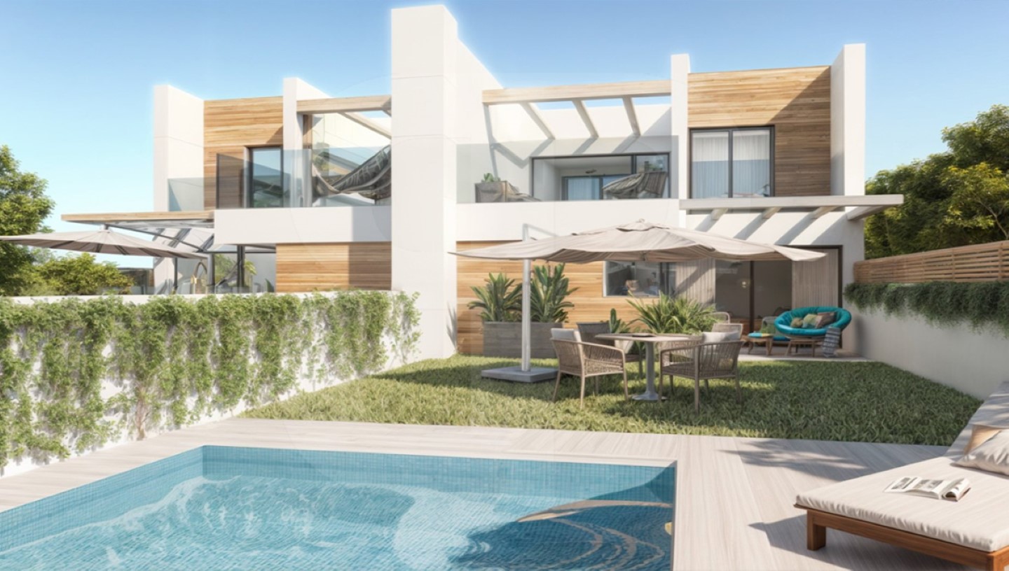 Bungalow en dos plantas ubicado en Alfaz del Pi. Nueva construcción con tres dormitoritos, tres baños y cocina cocina americana equipada, y una terraza en la primera planta. Trastero, galería y parking. Calefacción, disfruta de un jardín privado de 605m², piscina, aire acondicionado, amueblado. Soleado con grandes posibilidades, próximo a zona comercial.