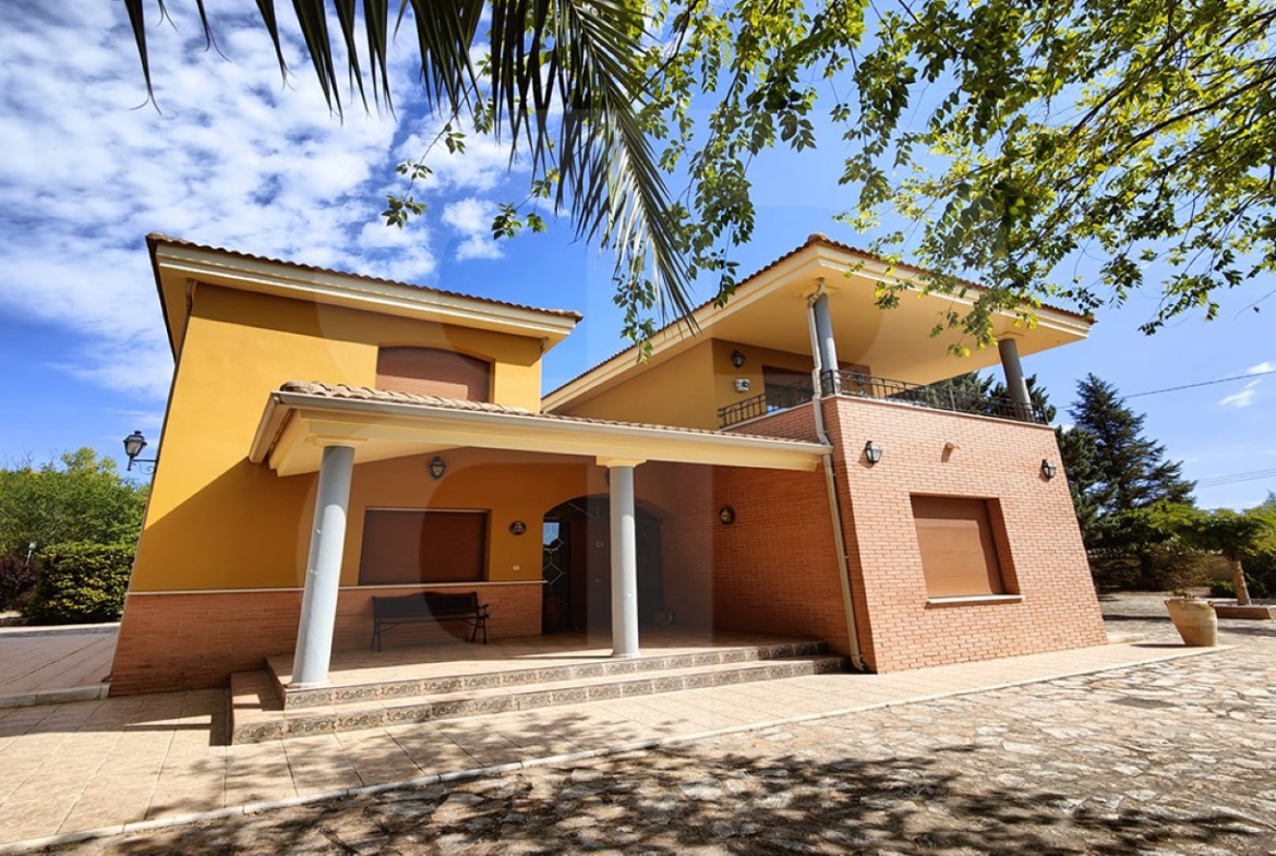 Chalet amplio construido en varias plantas en zona la Solana. Con vistas al pueblo y mucha luz con gran parcela. Posee un gran salón-comedor con chimenea de mármol, cocina despensa y lavadero. Cinco dormitorios y tres baños uno de ellos con hidromasaje. Semi-amueblado, calefacción gasóleo y aire acondicionado. Porche, galería, trastero, despensa, terraza cubierta y leñero, piscina, garaje para varios coches. Totalmente vallada de muro y alambrada. Cuadra para caballo y picadero. Ubicado en Banyeres de Mariola. Grandes posibilidades.